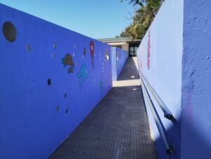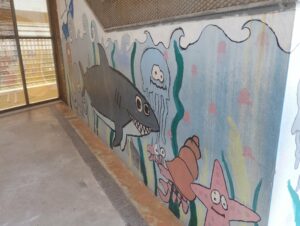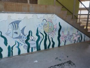 Desde la AMPA buscamos voluntarios y voluntarias para darle nueva vida al mural de “peces” del patio de las gradas que fue el legado de los alumnos de 6º de hace unos 6 años. El color se ha desgastado con el tiempo, ¡y queremos recuperarlo juntos!